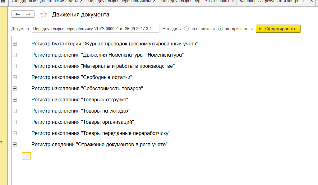 смотрю движение документа (регистры).