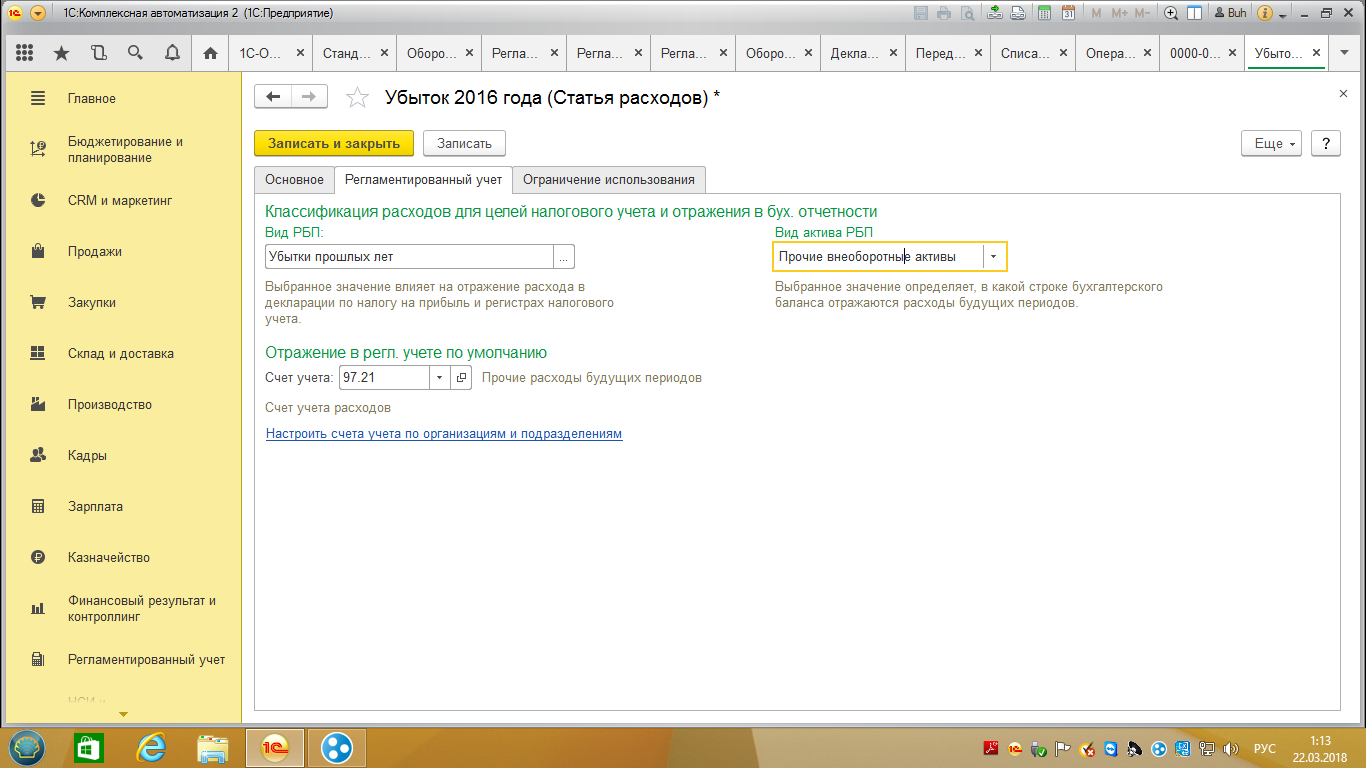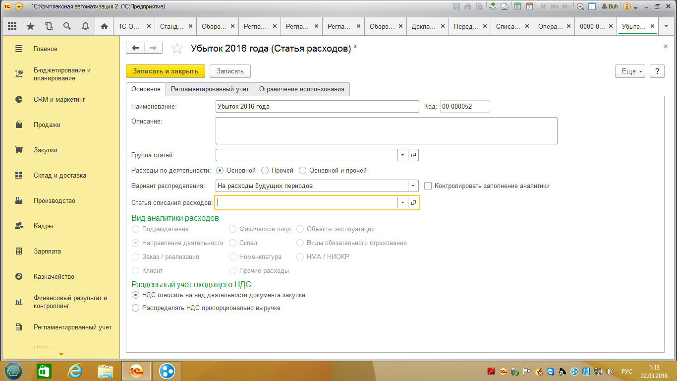 По умолчанию Re: Комплесная автоматизация: списание убытков прошлых лет