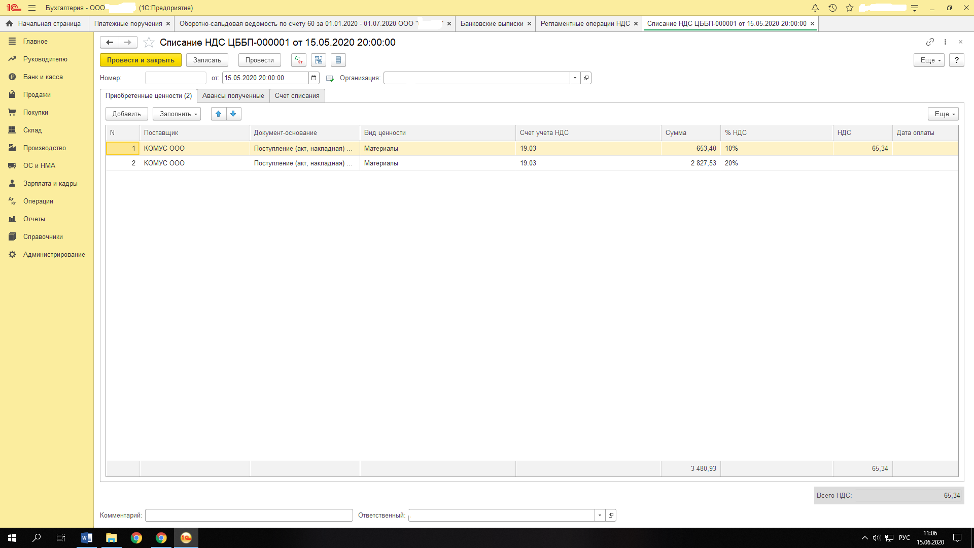 Возник вопрос, не могу решить Из документа поступления сделано списание ндс на 91.02, но только по определенным позициям (галка Отразить вычет ндс датой получения отжата). Как мне в книге покупок увидеть то, что осталось принять к вычету? Не получается, не включается оно туда С уважением, |