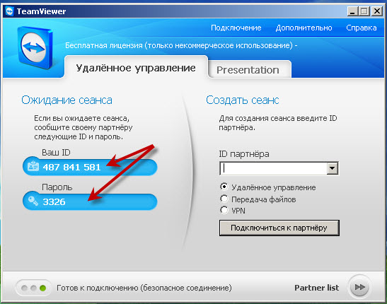 В свою очередь ведущий сначала в правой части окна вводит данные ID партнера и жмет кнопку "Подключиться к партнеру" (вложение 5).