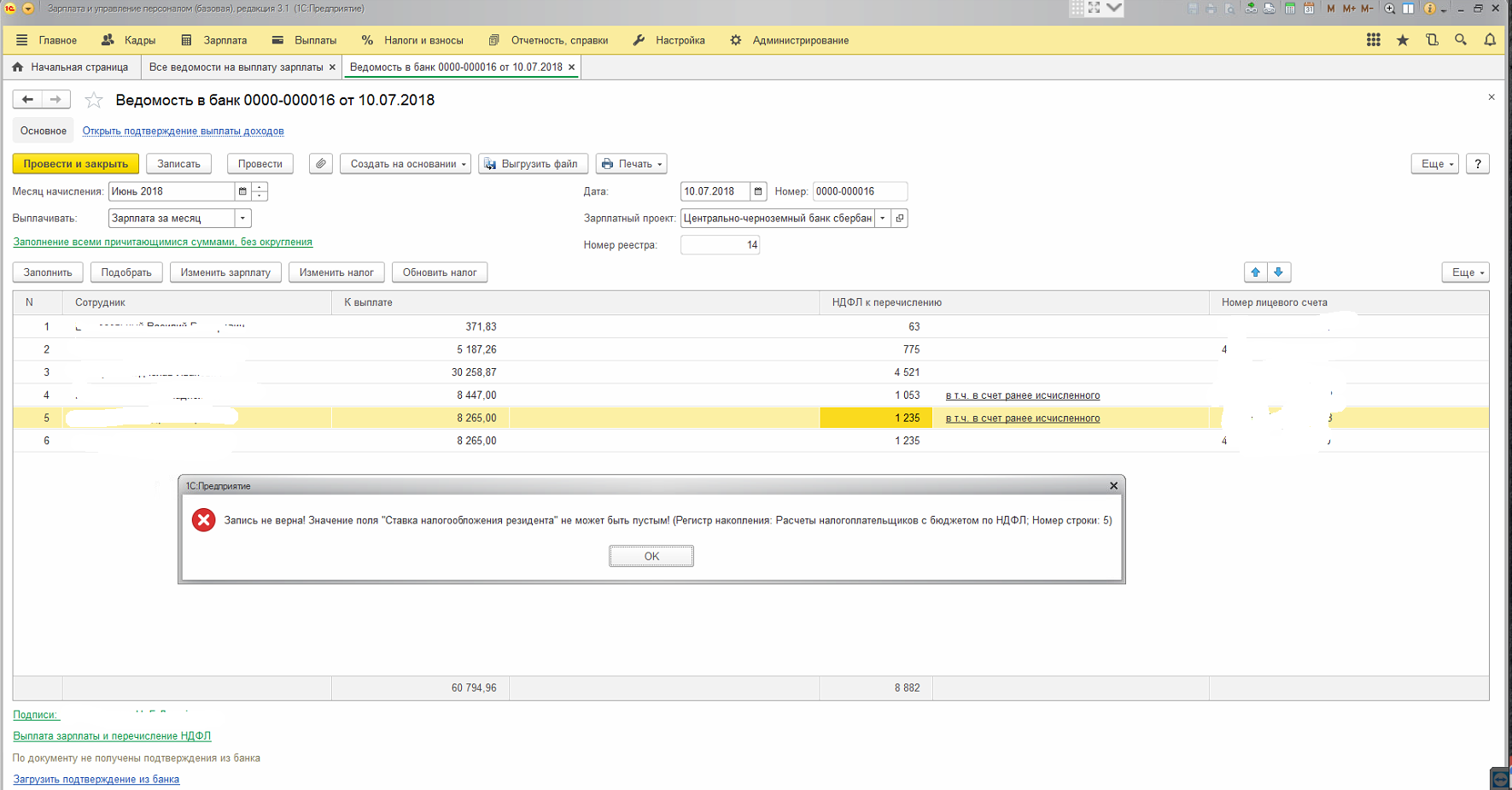 Как обычно по некоторым сотрудникам не правильно ставит НДФЛ (хотя в начислении всё верно), но это пол беды.
