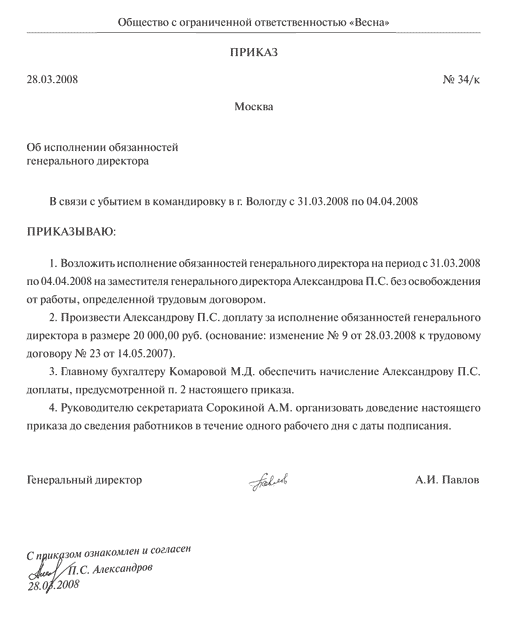 Если ваш генеральный директор отлучился надолго и возвращаться не собирается, то необходимо должным образом оформить изменения в учредительных документах. И лучше не откладывать это на потом, оформляя доверенности и приказы о возложении полномочий.