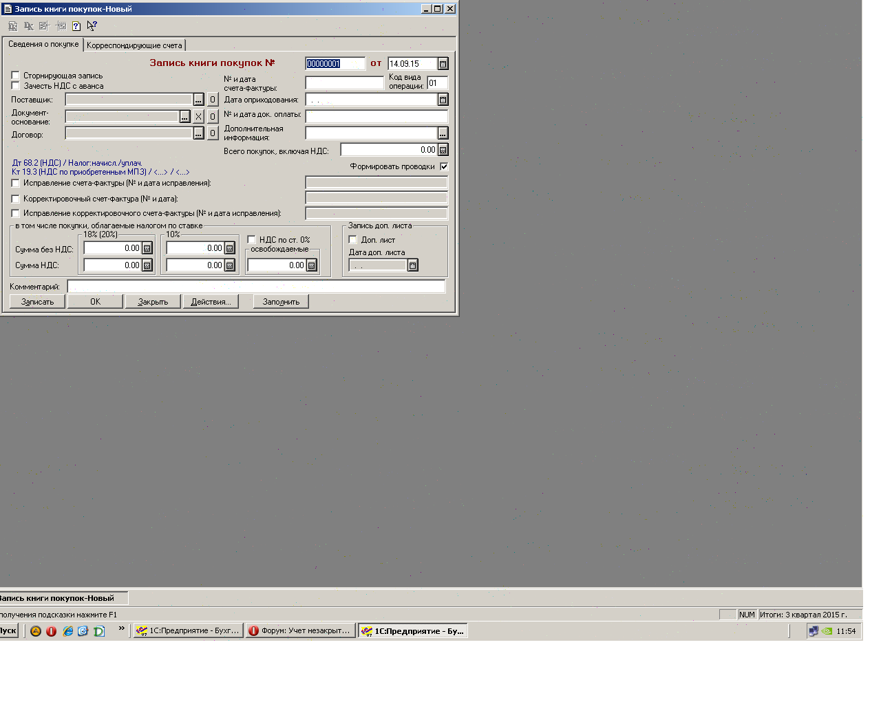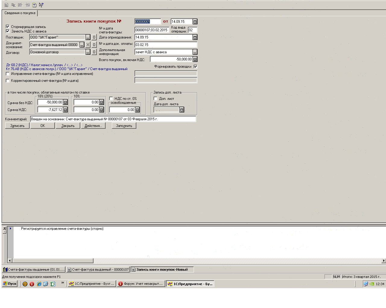 Спасибо большое.Значит я смотрю последнюю с/ф(которую я выставляла ранее в книге продаж), аванс по которой остался незакрытым реализацией и ее данные вношу в книгу покупок.Вы не подскажите,как заполнить "запись книги покупок",где проставить галочки...