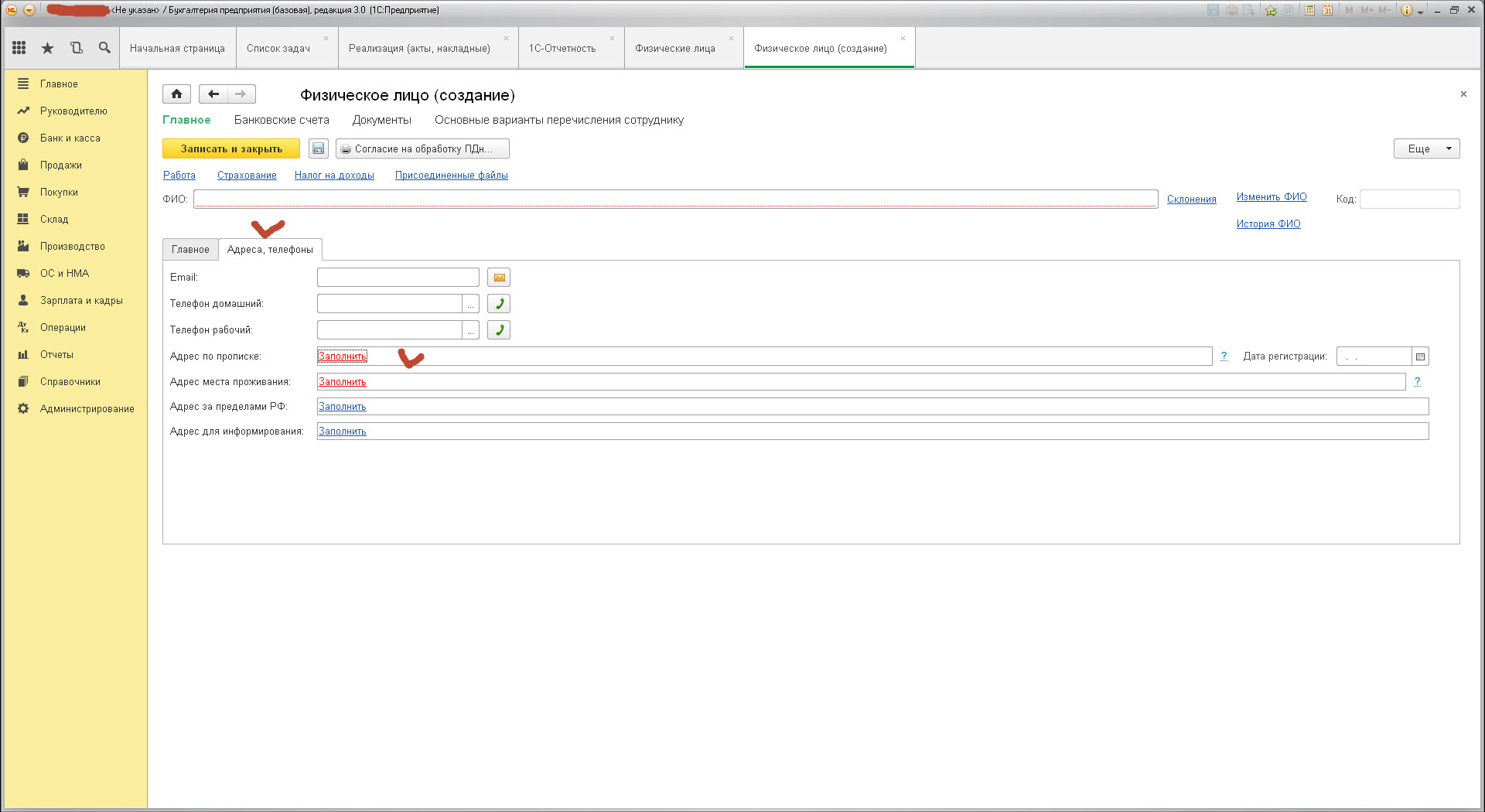 И что у тебя ни в справочнике сотрудники, ни в справочнике Физ лица нет возможности заполнить по КЛАДР ?