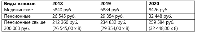 Таблица «Фиксированные платежи ИП 2018 – 2020»
