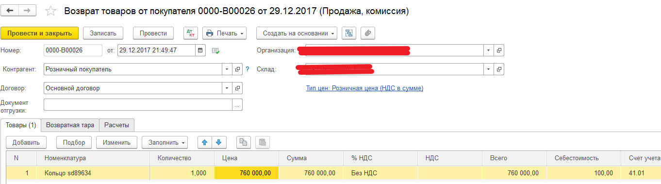 покупатель возвращает товар, почему покупная стоимость попадает в расход?