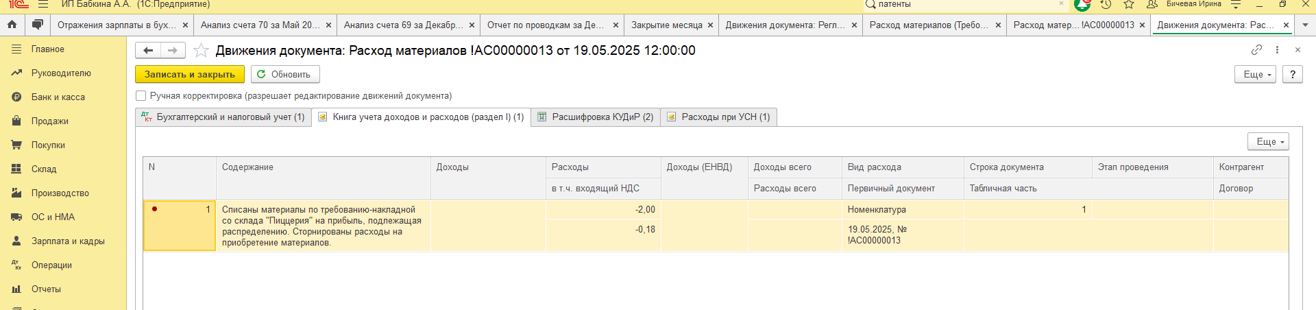 А если списываются готовые блюда, то в проводках вообще вкладки КУДИР нет, только вкладка "Бухгалтерский учет"