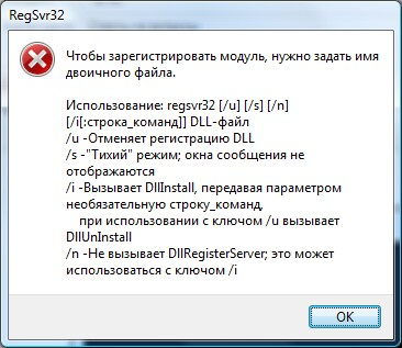 Regsvr32 [/u] [/n] [/i[:строка_команд]] DLL-файл