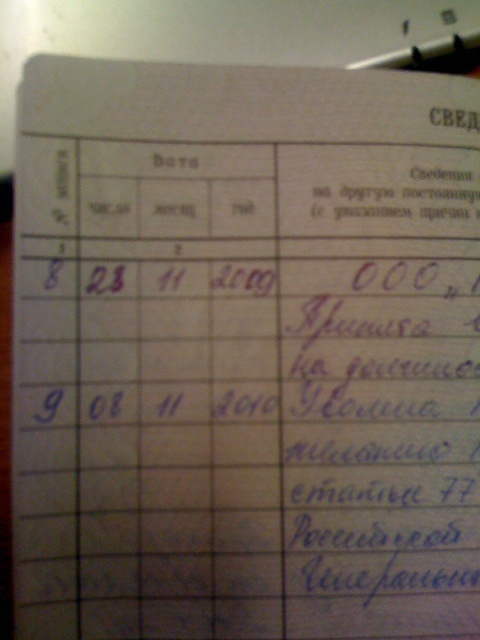 "Запись за номером 8 считать недействительной" 11 строка "правильная дата и далее прием на работу".