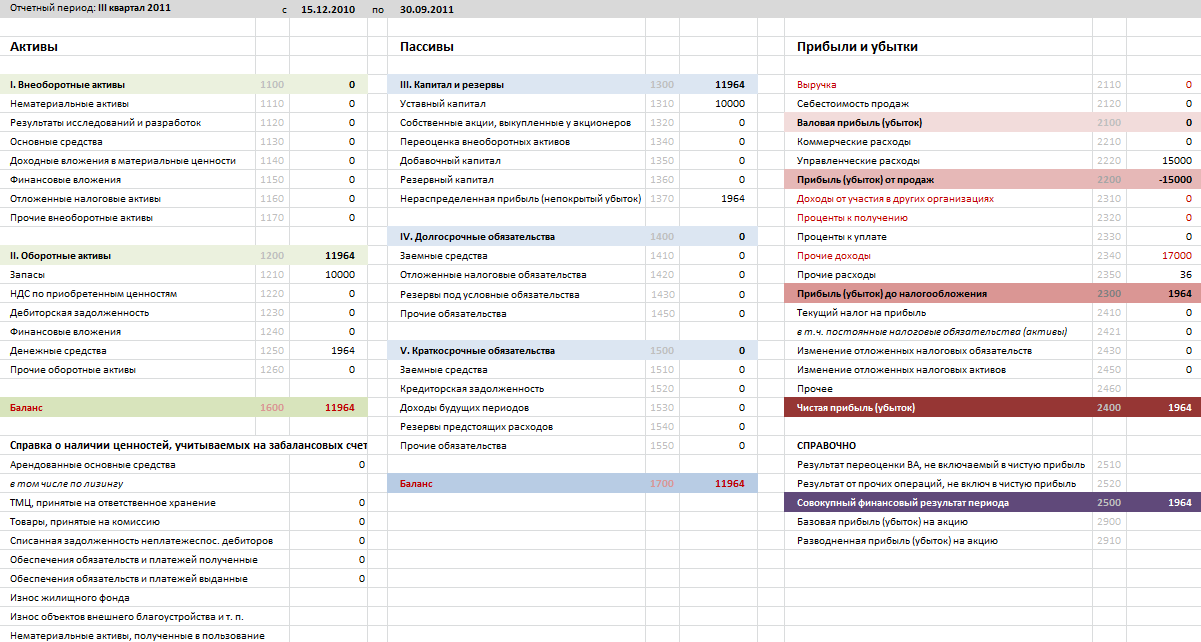 Сделал баланс и отчет о прибылях и убытках (примеры вложил), надеюсь, правильно.
