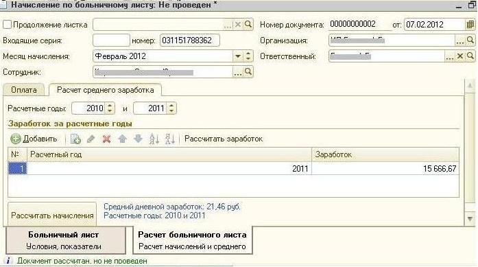 Но на закладке "Расчёт больничного листа" на закладке "Расчёт среднего заработка" программа заполняет только заработок, полученный сотрудником в нашей организации и не учитывает заработок с предыдущего места работы