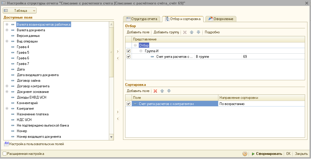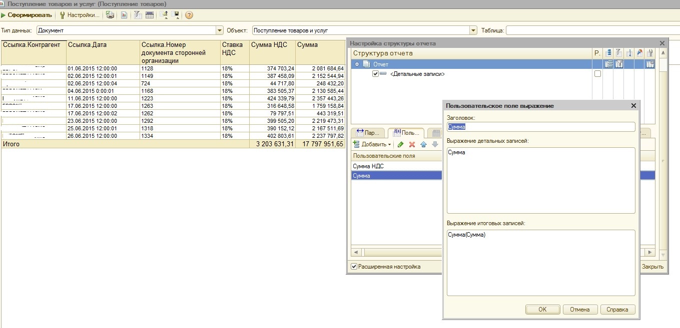 По умолчанию Re: Как настроить Универсальный отчёт? (1С 8.2 БП 2.0)