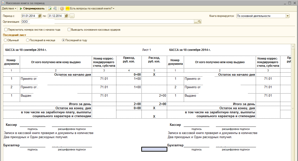 Мне казалось, что раньше 1С выводила на печать титульный лист кассовой книги и последний (где "в этой книге пронумеровано... подписи...")