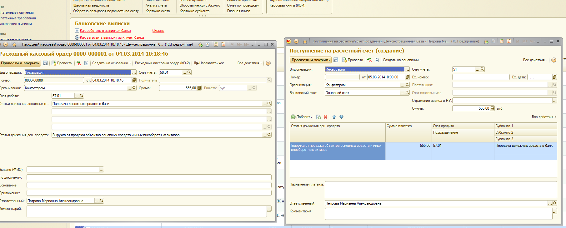 Я тоже так считаю, что инкасскация это несколько другое. В 1С 8.2 выручка сдавалась не через 57 счет, а напрямую Дт 51 Кт 50, а так получается, чтобы деньги появились на 57 счете, нужно сначала сделать операцию Дт 57 Кт 50, а потом уже Дт 51 Кт 57, или не так ? я просто через инкассацию никогда деньги в банк не сдавала.