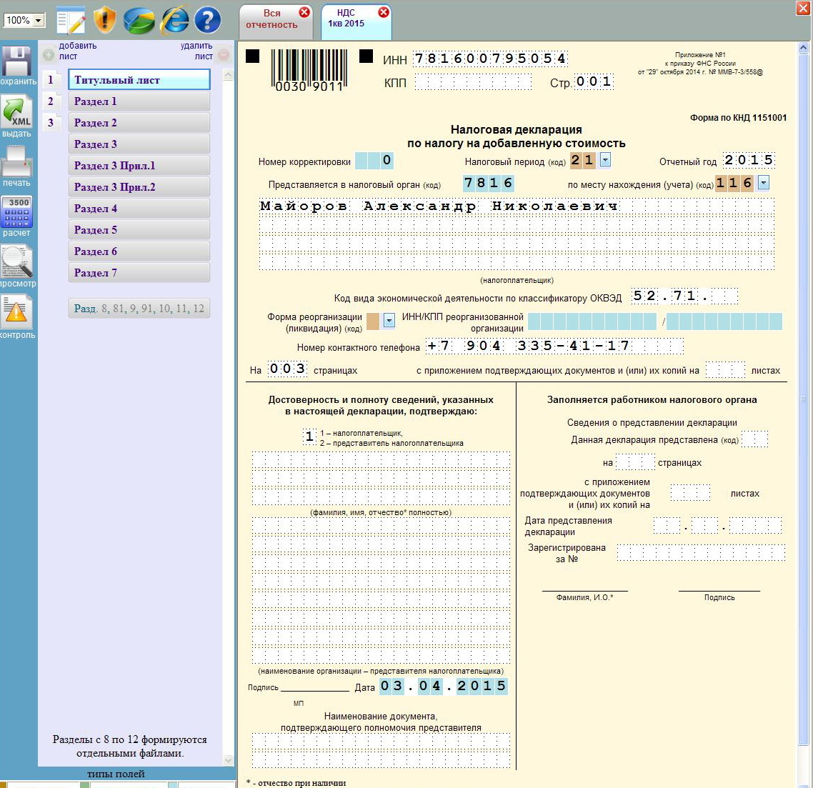 p.s. С 2005 года 4 раза в год с начало на бумаге, а с 2014 года электронно сдавал 3 листа - титульный, 1 раздел и 2 раздел. И всегда, всегда было без проблем. Даже как писал выше, что своему товарищу я на днях помог сдать НДС агент отчет электронно и также заполнил 3 листа и у него отчет прошел нормально. (Он район Московский и работает и сдает отчет, я Фрунзенский сдаю отчет работаю Московский). Помещения у нас от одного и того же арендодателя КУГИ.