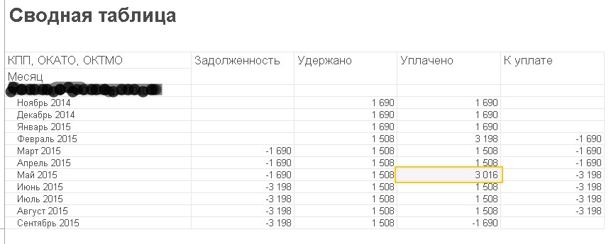 Добрый день! Помогите, пожалуйста, разобраться с НДФЛ. Формирую отчет "Анализ уплаты НДФЛ". Вижу, что в столбце "Уплачено" по строке "Февраль 2015" и по строке "Май 2015" сумма уплаченного НДФЛ задвоена. Что нужно исправить?