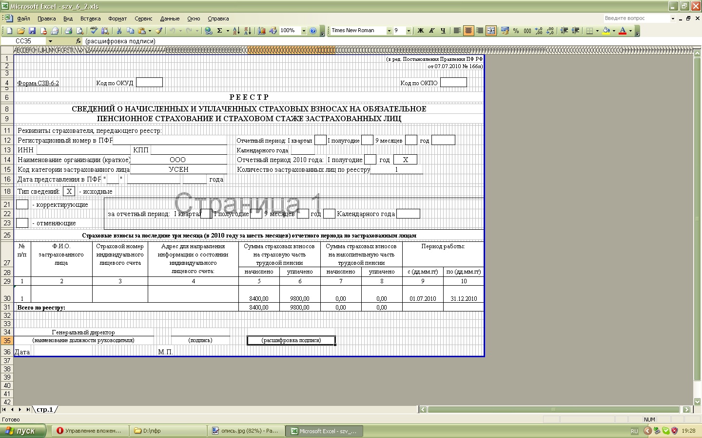 У нас ООО УСНО доходы минус расходы.... Хочу знать правильно ли я все заполнила в программе с сайта ПФР? и правильно ли сделала реестр с описью? ![]() Взносы у нас с з/п 1 400 руб. Дано: Оплата/ За период 09.02.10 за январь 02.03.10 за февраль 02.04.10 за март 30.04.10 за апрель 10.06.10 за май 15.07.10 за июнь 10.08.10 за июль 06.09.10 за август 07.10.10 за сентябрь 03.11.10 за октябрь 07.12.10 за ноябрь 28.12.10 за декабрь (если 2 раза щелкните на иконке, будет лучше видно )