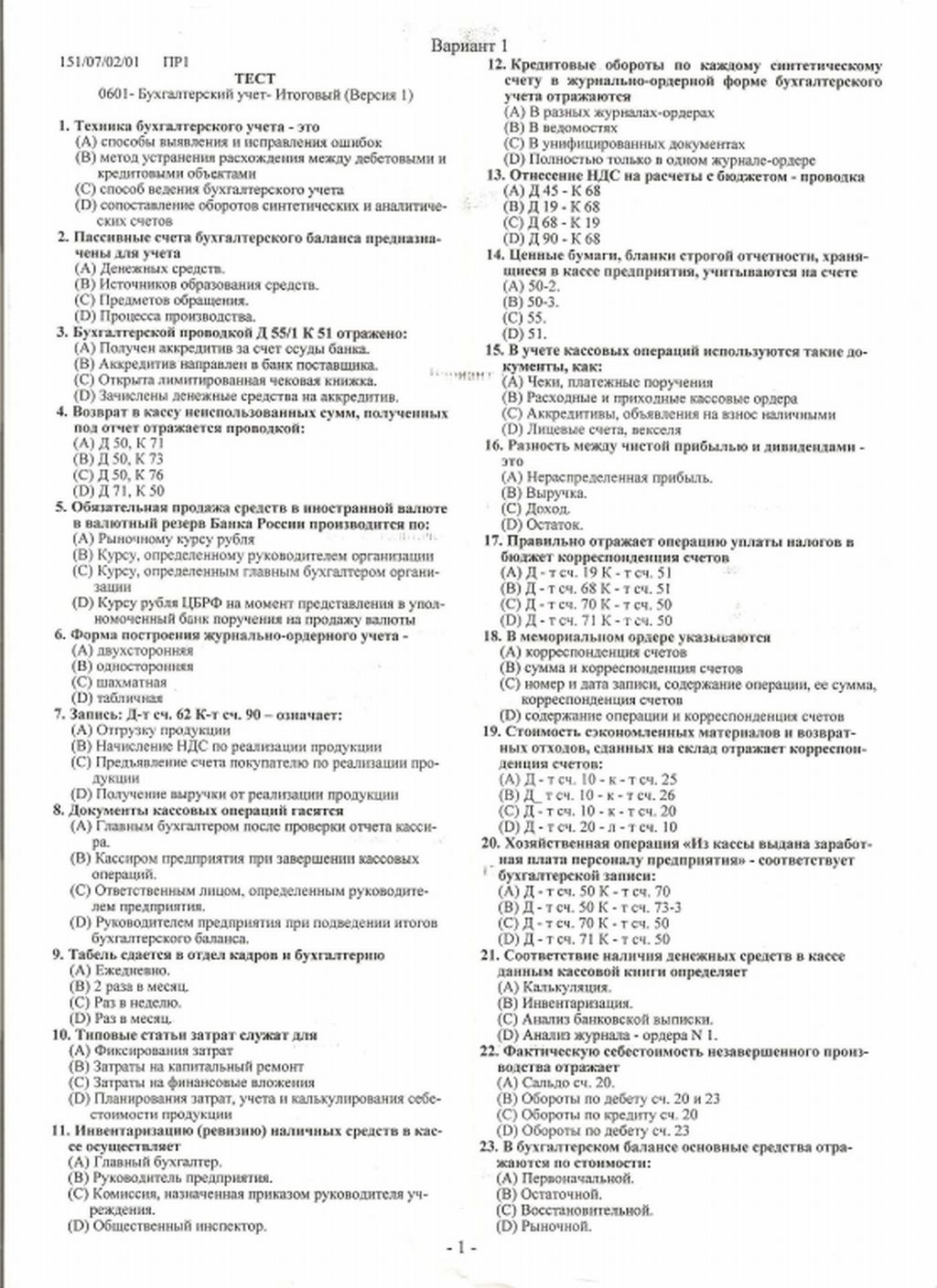 Здравствуйте! Помогите пожалуйста с тестом. Наверно, не очень корректно просить здесь помощи, но я думаю любому бухгалтеру не составит труда на него ответить. Почему не сделаю сам? я думаю многие со мной согласяться - бухгалтером нужно родиться) очень надеюсь на понимание, заранее всем спасибо.