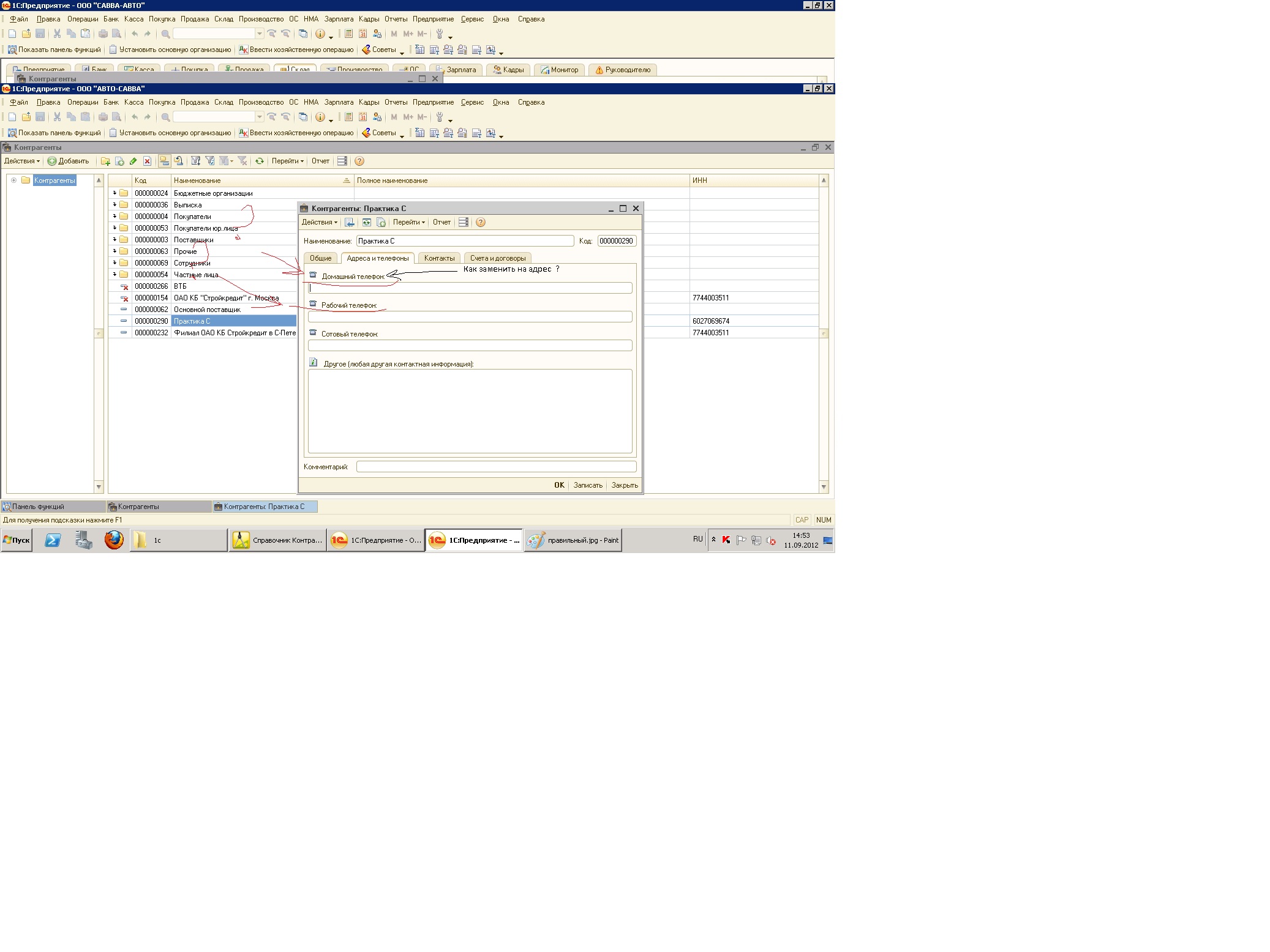 Имеются две бухгалтерии 8.2 в одной в справочнике контрагенты в фоме контрагента во вкладке "адреса и телефоны" имеются поля; "телефон домашний", "телефон рабочий". В другой на этих местах: "Адрес фактический", "Адрес Юридический".