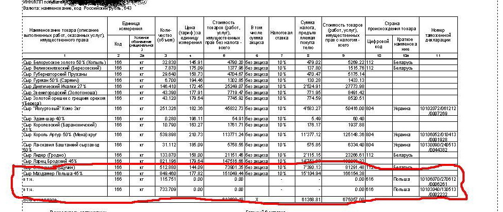 Здравствуйте! Занимаемся оптовой торговлей продуктами питания, в т.ч. импортными. При отгрузке одного наименования товара, но из разных партий, счет-фактура формируется следующим образом (см. вложение)