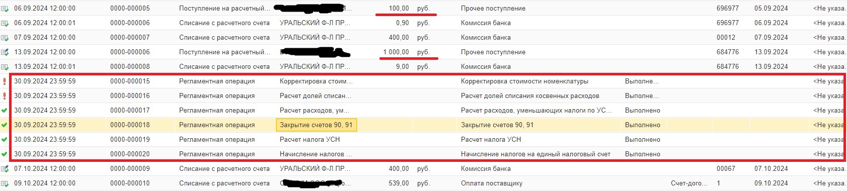 Регламентная операция при закрытии месяца закрытие счетов 90,91 и Расчет налога усн