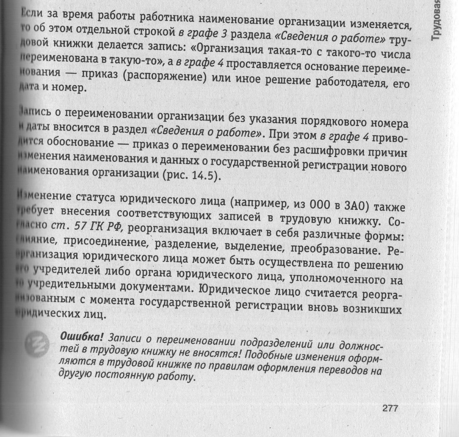 Поскольку ни в Инструкции, ни в Правилах ведения и хранения трудовых книжек, изготовления бланков трудовой книжки и обеспечения ими работодателей, утвержденных Постановлением Правительства РФ от 16.04.2003 N 225, не содержится запрет на отражение сведений об изменении наименования места работы вышеуказанным способом, то его нельзя считать неправомерным.