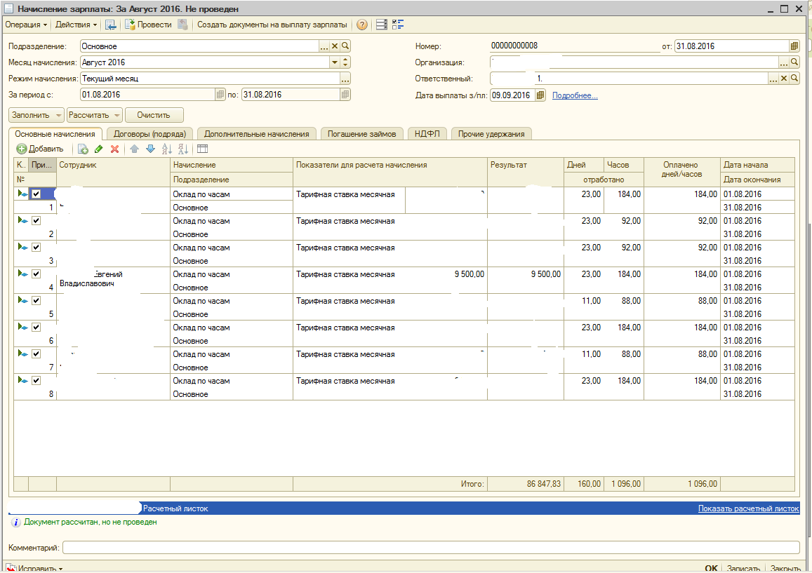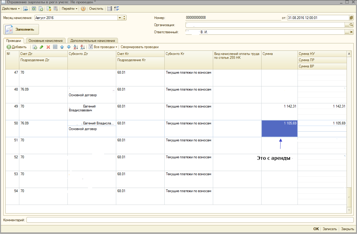 Создала основное начисление. Сделала плановое начисление для этого сотрудника. Всё равно не как надо выходит. Да что ж такое... вот где-то какая-то дурная дата...