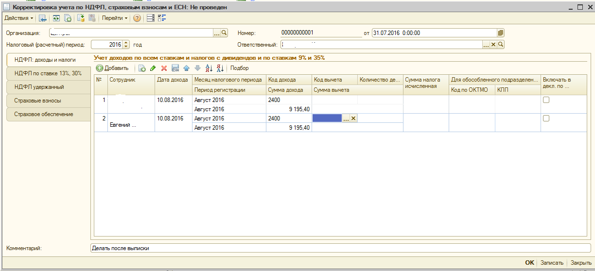 Зарплата 9500 вычет 1400 за аренду 9195,4 Мне надо: НДФЛ с зарплаты 1053 ((9500-1400)*13%) НДФЛ с аренды 1195,4 А программа ставит с зарплаты 1235 и с аренды 1014 хоть ты тресни... берет вычет с аренды и всё тут.