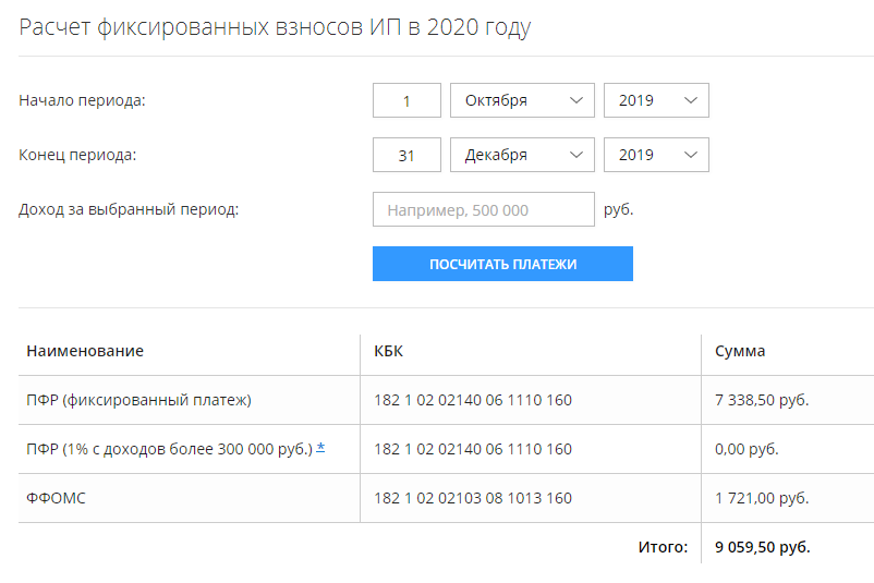 Как мне рассчитать сумму налогов Пенсионный фонд и ОМС Если ИП открыто 1010.2019г |