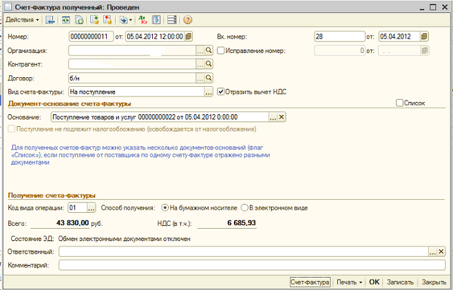 Опишите подробно как заносите сч-фактуры полученные