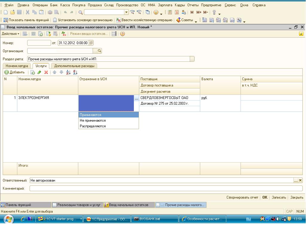 Т.е., например, если у меня на начало года осталась неоплаченная задолженность за электроэнергию на сумму, скажем, 1000 руб., я заполняю и вкладку "Основные счета плана счетов", в которой ввожу остаток по счету 60.01 и вкладку "Прочие непризнанные расходы УСН" через ввести остатки расходов"?