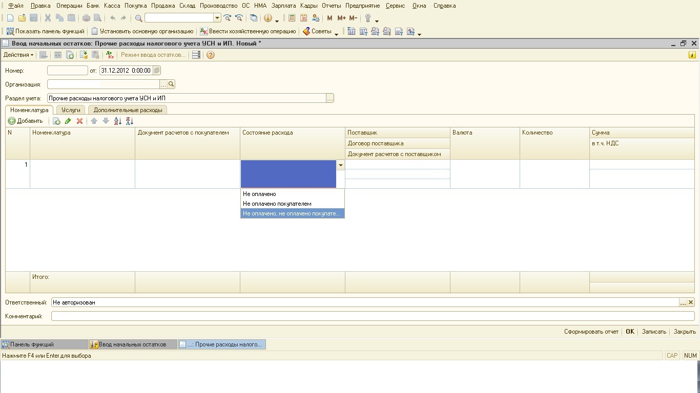 Захожу на вкладку "Прочие непризнанные расходы УСН" -> Ввести остатки расходов