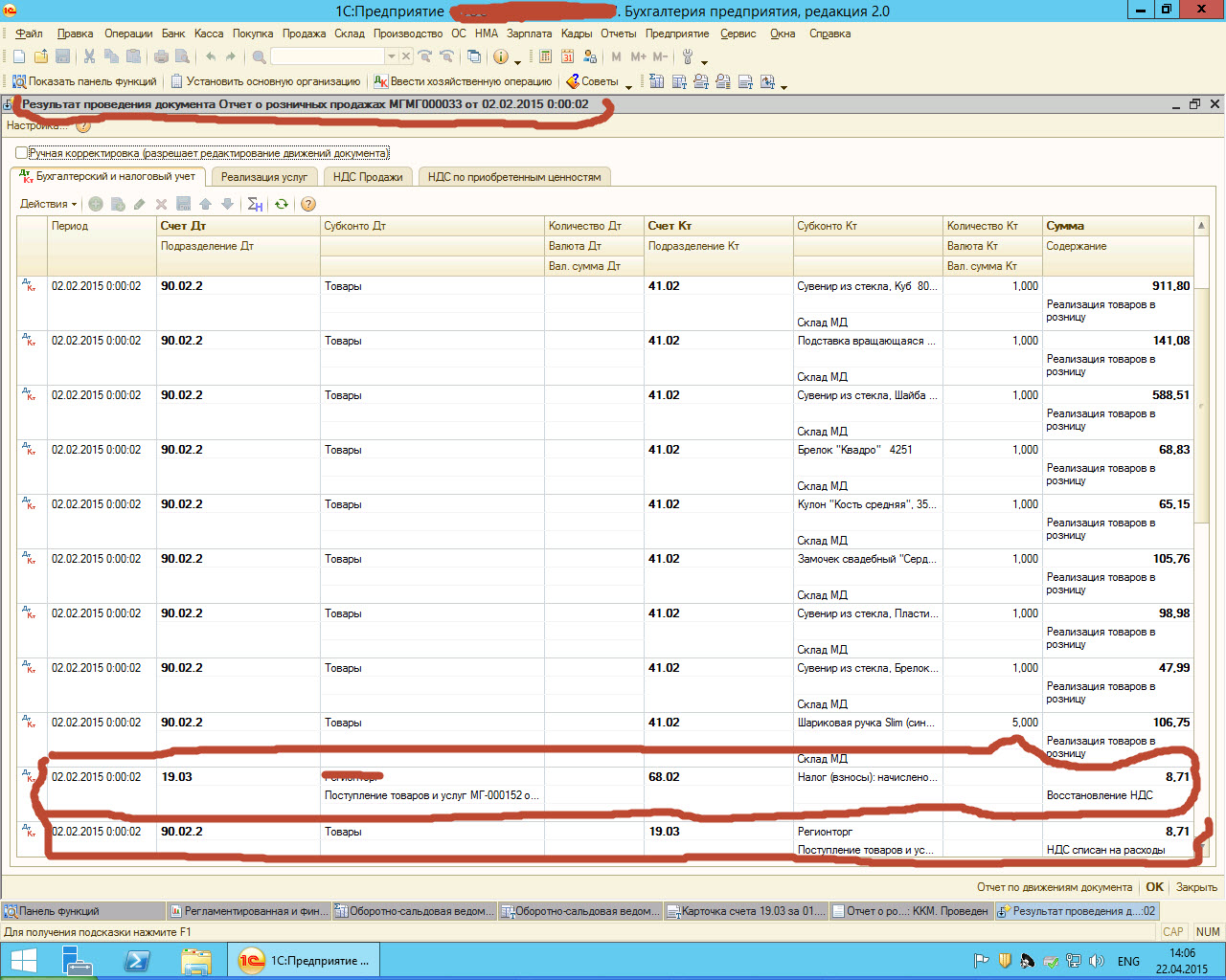 Весь бухгалтерский учет ведется в 1С-7 Торговля, где ОСНО и ЕНВД. Я ИП, имею право не вести бухгалтерский учет, поэтому для ведения налогового учета, только данные по ОСНО перекачиваю в 1С-8 Бухгалтерию. Есть Книга покупок, весь НДС приняла к возмещению. Есть Книга продаж, вся реализация по ОСНО, НДС к доплате. Составила декларацию по НДС, получилось НДС к возмещению, оно и понятно, т.к. ЕНВД в книгу продаж не входят. Потому что: Цитата: