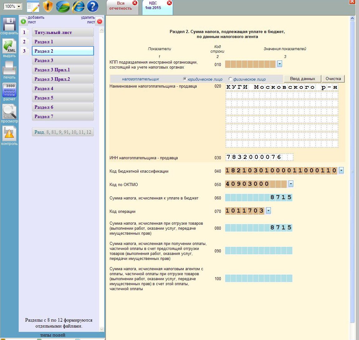 p.s. С 2005 года 4 раза в год с начало на бумаге, а с 2014 года электронно сдавал 3 листа - титульный, 1 раздел и 2 раздел. И всегда, всегда было без проблем. Даже как писал выше, что своему товарищу я на днях помог сдать НДС агент отчет электронно и также заполнил 3 листа и у него отчет прошел нормально. (Он район Московский и работает и сдает отчет, я Фрунзенский сдаю отчет работаю Московский). Помещения у нас от одного и того же арендодателя КУГИ.