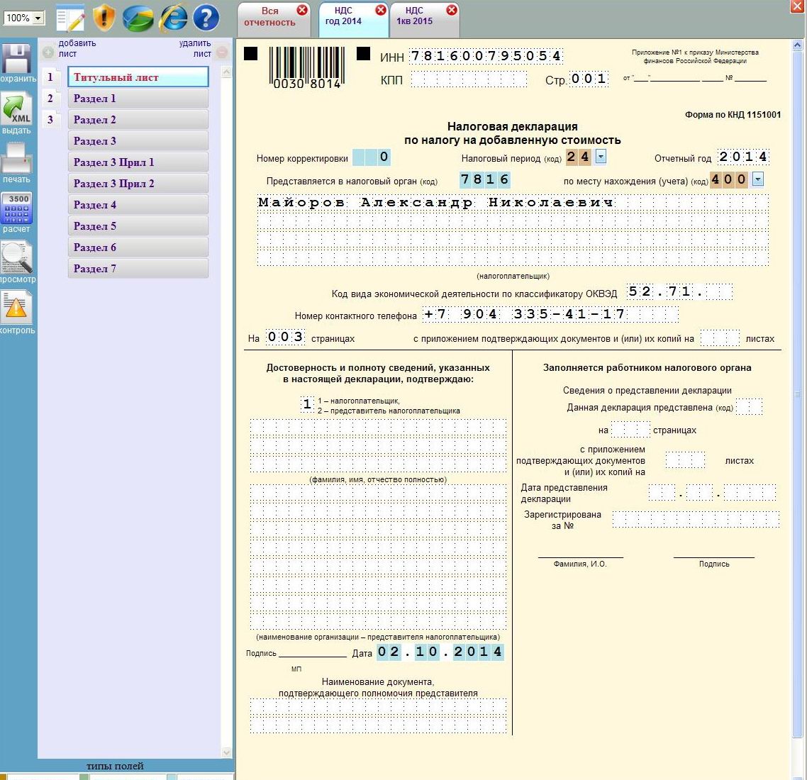 Налоговая декларация по налогу на добавленную стоимость 21 2015