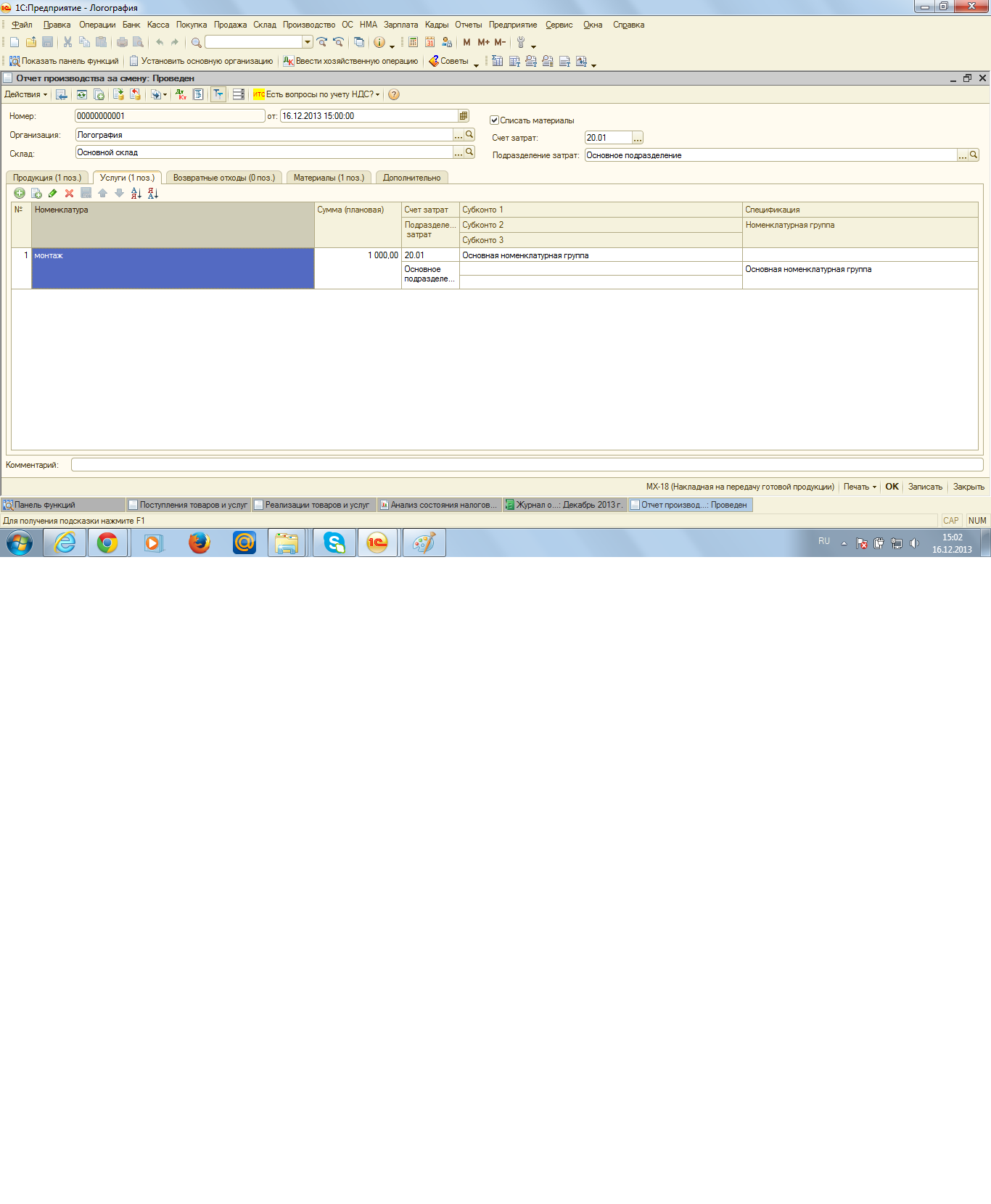 | Отчет производства за смену | Анна02 | Общая система налогообложения (ОСНО) | 3 | 13.07.2010 13:18 |