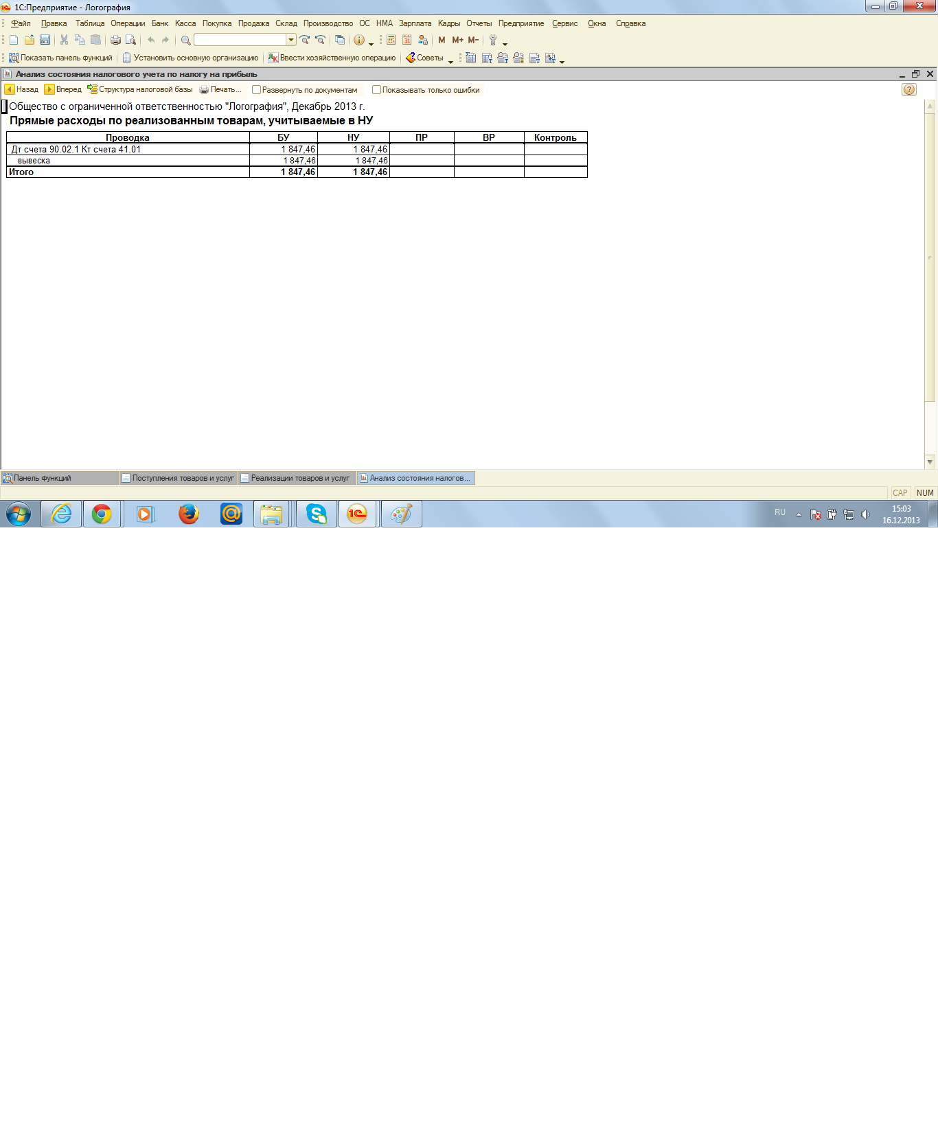 Добрый день! в выпуске продукции постоянно не идет НУ и БУ. Что я только ни делала,но разница все равно остается 5091,26 - это сырье, а 10470,34 - это мы покупали услуги у сторонней организации для изготовления этой продукции. Аналитику везде проверяла,ничего не помогает, из-за чего может быть эта разница?