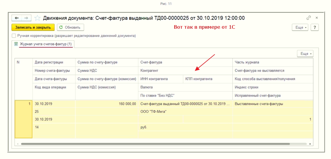 почему-то в итоге у меня отличаются движения по сч/ф от тех, что в примере.