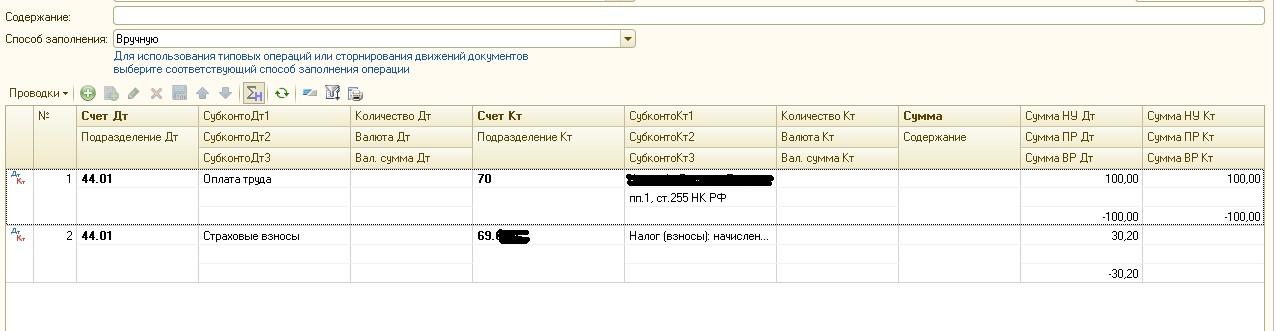 А когда идут в отпуск за счет резерва, то делаем вручную проводку по затратным счетам Д 26 К 70,69 только в НУ, чтобы затраты в НУ показать и закрываем еще ВР соответственно.