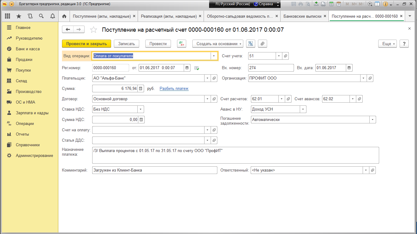Предприятие ООО на УСН доходы к ним поступают деньги от Моби деньги НКО. Но не вся сумма их это прибыль. Первое мне непонятно как это правильно провести в 1С 8.3. Второе как правильно отразить это в УСН. И еще если поступления от Альфа банка. Помогите пожалуйста разобраться. В приложении скрины с банковской выписки.