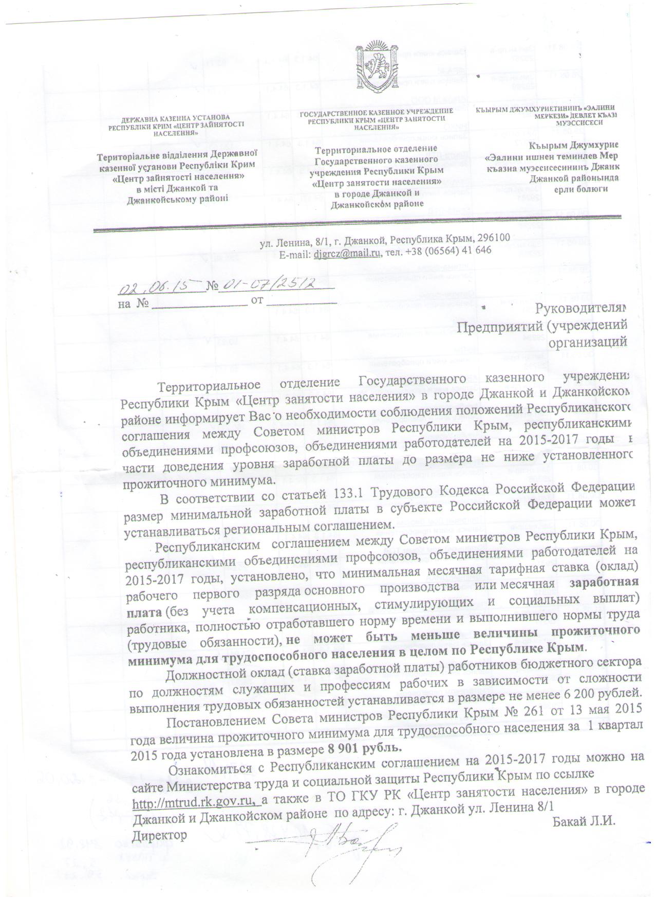 Вот такие письма рассылает ЦЗ по мин з\п в Крыму.