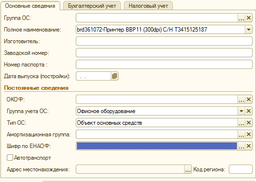 По умолчанию Учет основных средств
