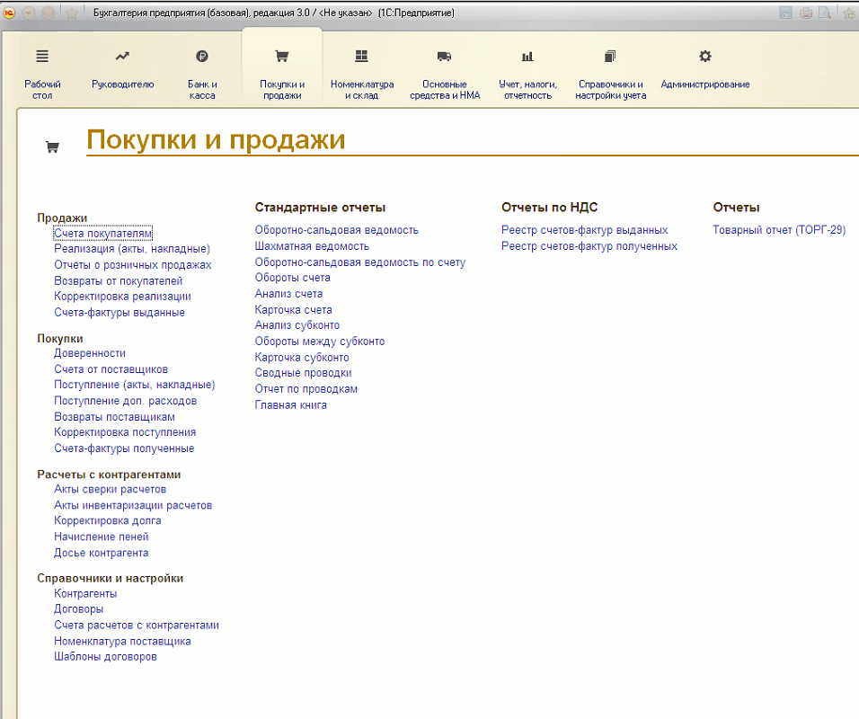 (кстати да, видно что интерфейс делали не бухи, объединили по группам разные вещи. Отчетность и оборотки - для них это всё едино отчеты)