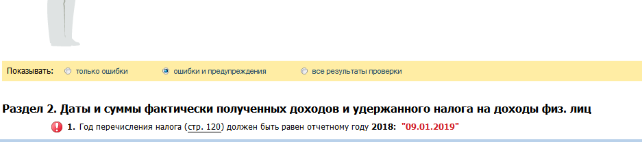 Я тут посмотрела 2016 и 2017 год отчеты, почему программа ошибку не выдавала. А потому, что ЗП выдавалась не последним рабочим днем в году, а предпоследним. Последним стоял срок уплаты строка 120. И получается у меня ни разу отчет по сроку не уходит в следующий год. А в 2018 году зп выдана последним днем и строка 120 вышла за пределы 2018 года. Поэтому прога и пишет ошибку
