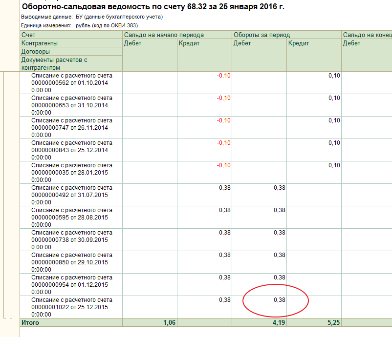 а тут ты его же и начислила. В результате имеешь то, что имеешь. Убирай наверное копейки красным сторно в К 68.02