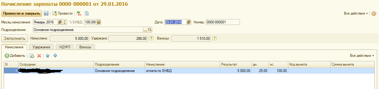 Учетная политика настроена под ОСНО + ЕНВД. Начисления делаю отдельно.
