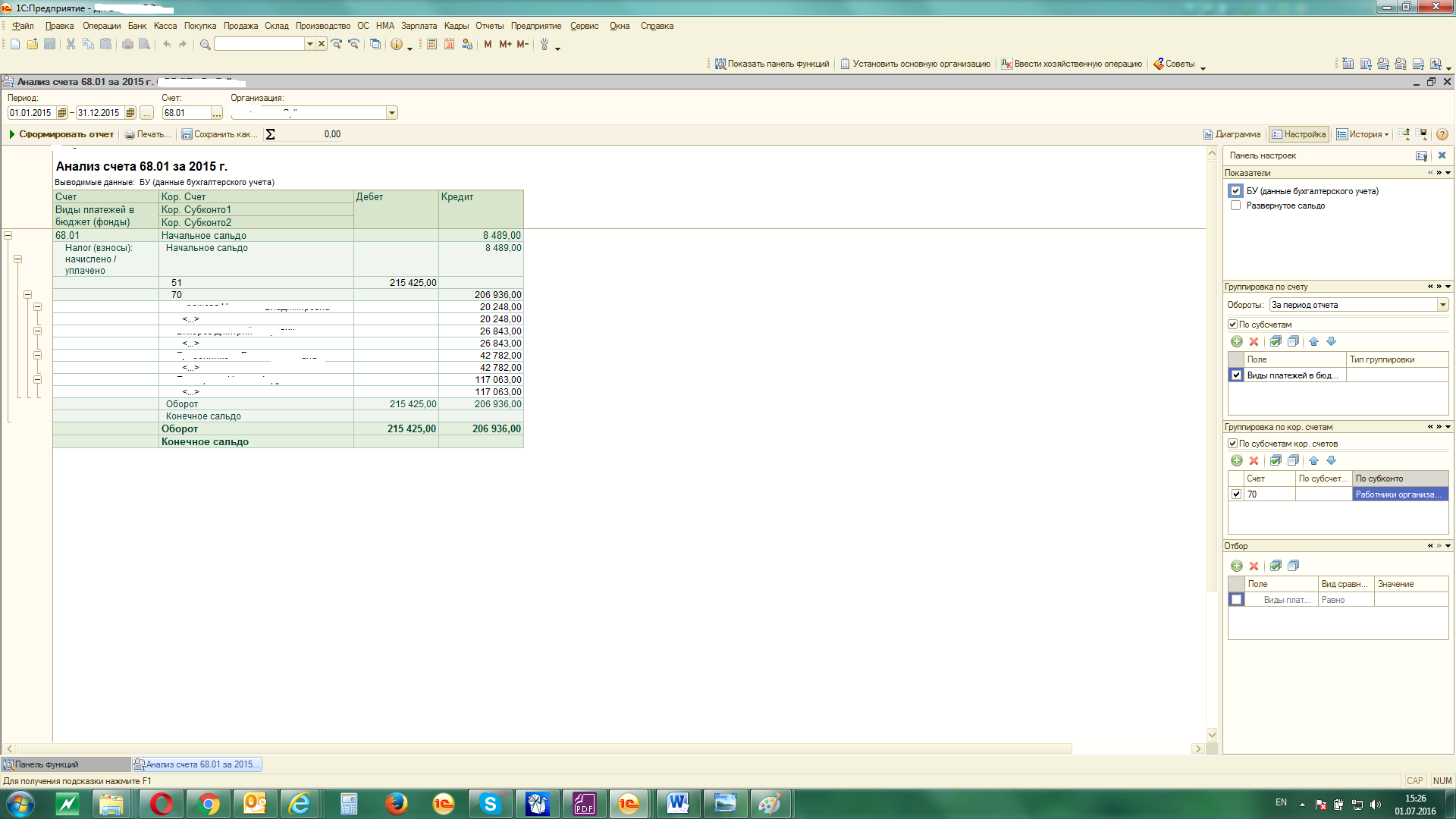 Анализ сч.70 даёт отбор по сотрудникам, а вот с 68.01 что-то не выходит...