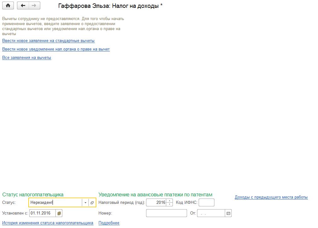 Материалы газеты «Прогрессивный бухгалтер», № 9, декабрь 2016 Анжелика Махно, бухгалтер-консультант Линии консультаций ГК «ГЭНДАЛЬФ» Документы для приема иностранца на работу Вопрос найма иностранных работников регулируется гл. 50.1 ТК РФ.Во-первых, будущий сотрудник предоставляет своему потенциальному работодателю пакет документов, который является необходимым для оформления трудовых отношений. Этот пакет включает следующие документы: паспорт, виза, миграционная карта, разрешение на работу или патент (для временно проживающих граждан), трудовая книжка (если ее нет, то работодатель должен ее завести), страховое свидетельство государственного пенсионного страхования (если это первое место работы у иностранца, то работодатель должен оформить СНИЛС), договор (полис) добровольного медицинского страхования, действующий на территории РФ (для временно пребывающих иностранцев), документ об образовании или о квалификации. Во-вторых, после предоставления пакета документов иностранцем происходит формирование трудового соглашения. В обязательном порядке работодатель должен проинформировать миграционную службу о принятии нерезидента на работу. Следом происходит формирование необходимой кадровой документации, ознакомление нового сотрудника со всеми требуемыми нормативными документами внутреннего характера, проведение инструктажа и прохождение медосмотра, если того требует профессия или должность принимаемого на работу иностранного гражданина. Настройки «1С:Бухгалтерии 8» В программе порядок регистрации приема на работу иностранных граждан совпадает с российским, но имеется ряд отличий в заполнении некоторых данных. Запись ФИО иностранных физических лиц можно осуществлять при помощи букв латинского алфавита, кроме этого, можно пропустить заполнение отчества, если оно не указано в документе, удостоверяющем личность. Если прибывший вновь сотрудник-иностранец не имеет страхового свидетельства, то получить его он может после обработки ПФР анкеты застрахованного лица (форма АДВ-1), переданной страхователем. При принятии на работу сотрудника-иностранца кадровому работнику организации необходимо внести его данные в программу. В меню выбираем «Справочники» – «Зарплата и кадры» – «Сотрудники». Нажимаем на кнопку «Создать». Заполняем поля: ФИО, дата рождения, пол. Записываем сотрудника и нажимаем на ссылку «Принять на работу», заполняем все имеющиеся поля. Для сохранения данных необходимо нажать кнопку «Провести и закрыть». Далее заполняем «Личные данные» нового сотрудника: • место рождения. Здесь необходимо заполнить все поля, после чего нажать кнопку «ОК»; • гражданство страны. Заполнятся в соответствии с документом, удостоверяющим личность; • ИНН в стране гражданства. Данное поле необходимо заполнить для формирования справки 2-НДФЛ; • документ, удостоверяющий личность. В поле «Вид документа» необходимо выбрать именно тот документ, который удостоверяет личность сотрудника, и заполнить оставшиеся поля; • адреса и телефоны. В этом разделе указывается контактная информация сотрудника. Обязательно заполняется поле «Адрес за пределами РФ», так как сотрудник, который устраивается на работу, является иностранным гражданином. Для сохранения личных данных сотрудника-иностранца необходимо нажать кнопку «ОК». Далее на