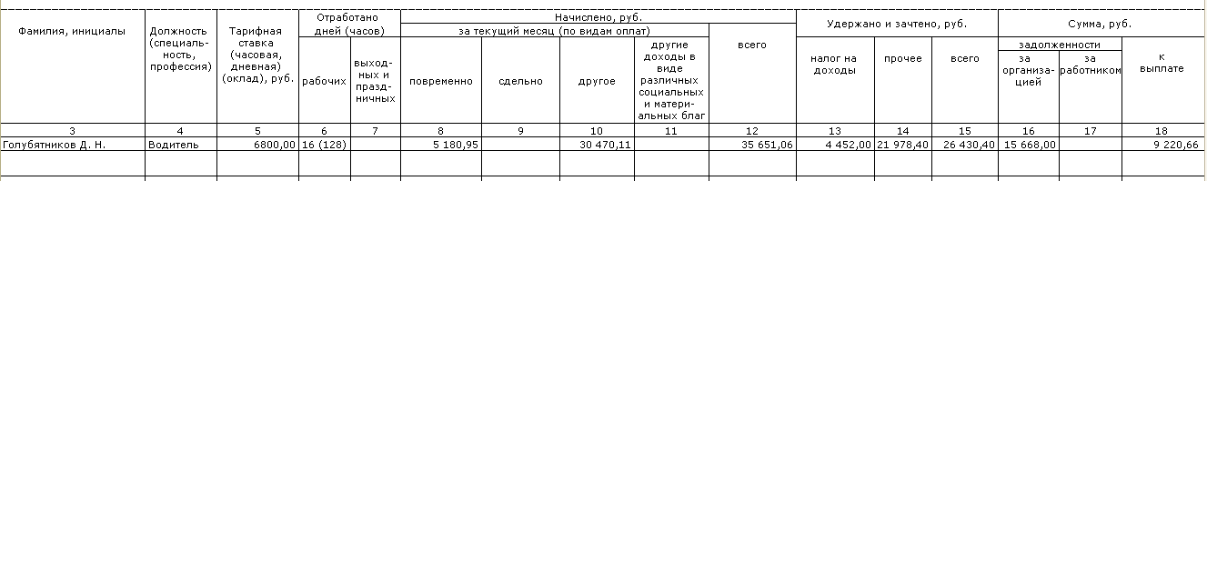 и если у меня нет зад-ти за сотрудником, то тогда я получаю такую же сумму к выплате