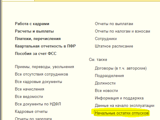 – С начала этого года начали работать в «1С:Зарплата и управление персоналом 8», ред. 3.0. На начало года необходимо внести остатки отпусков по сотрудникам. Подскажите, пожалуйста, какими документами отразить остаток?